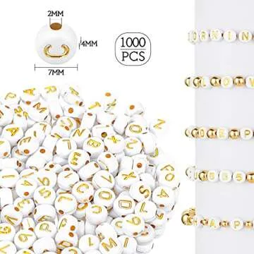 Yinkin 1000 Pieces Round Acrylic Letter Number Beads Charms Gold Letter Beads White Alphabet Beads 4 x 7 mm Alphabet Figure Beads for Craft DIY Necklace Bracelet Keychain Jewelry Making