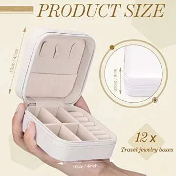 Yinkin 12 Pcs Mini Travel Jewelry Case Bridesmaid Proposal Gift Boxes, Small PU Leather Earring Organizer, Bulk Travel Accessories Portable Jewelry Holder(White)