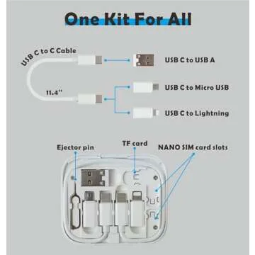 Yinow USB C to C Cable 11.3'' with 3 OTG Adapters Type C Female to USB A/Micro/iOS Device Male in Pocket Mirror Case, White