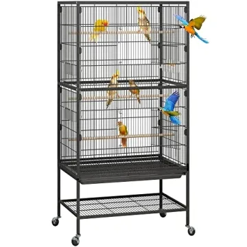 This cage is ideal for small to medium-sized birds like parakeets, parrots, canaries, finches, conures, and cockatiels.