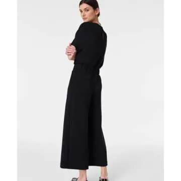 Yioaga Jumpsuits for Women Casual Short Sleeve Cropped Wide Leg Pants Summer Loose One Piece Romper Jumpers Outfits(Black,M)