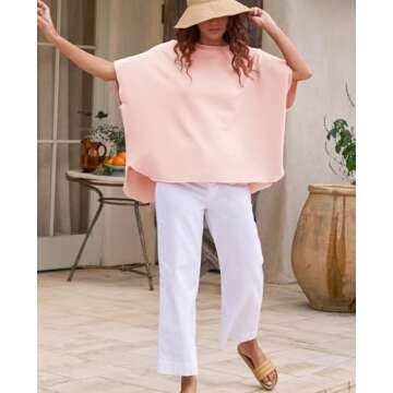 Yioaga Oversized Tshirts for Women Cap Sleeve Loose Fit Summer Tops Casual Crewneck Trendy Plus Size Fashion Basic Tees(Pink,M), Medium