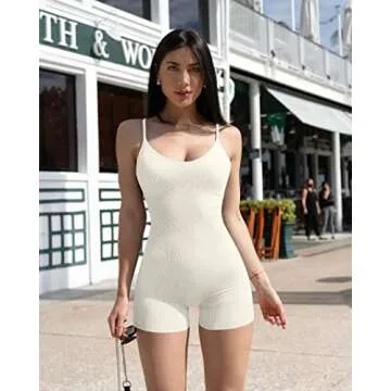 YIOIOIO Women Workout Seamless Jumpsuit Yoga Ribbed Bodycon One Piece Spaghetti Strap Shorts Romper
