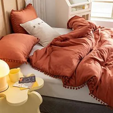 YIRDDEO Queen Comforter Set - Comforter Queen Size Sets with Ball Pom Fringe, Soft Bedding Set for All Seasons - 3 Pieces, 1 Comforter (90"x90") & 2 Pillow Shams (20"x26"), Terracotta