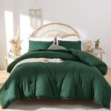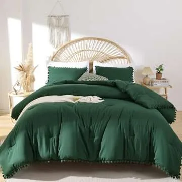The standout feature of this comforter set is its charming **Pom Fringe Design**. Enhanced with durable ball tassels stitched on three sides, the decorative trims not only add a whimsical touch to your decor but are also designed for longevity, remaining securely in place wash after wash. The elegant emerald color adds a vibrant pop to your bedroom decor, perfectly complementing a variety of interior styles, from bohemian to modern simplicity.
