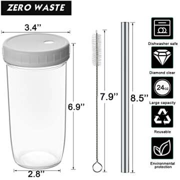 Yirilan Glass Cups - 4 Pack 24oz Mason Jar Drinking Glasses with Lids and Straws,Reusable Boba Cups,Iced Coffee Cup/Tumbler, smoothie cup