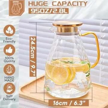 Yirilan Glass Pitcher, 2.8 Liter Water Pitcher with Lid, Beverage Serveware, Iced Tea Pitcher, Water Carafe Handle, Heat Resistant Borosilicate Jug