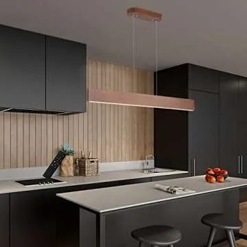 Show more Introducing the **YISDESIGN 39.4" Wood Linear Pendant Light**, a stunning addition to any dining room or kitchen island. This pendant light combines functionality with elegance, featuring a sleek and modern design that perfectly complements both contemporary and traditional spaces. The pendant measures 39 x 3.54 inches and is crafted from 100% solid American ash wood, showcasing the natural wood grain that brings warmth and character to your space. With a powerful 24 watts LED light source (CRI > 85) and a remarkable brightness of 1848 lumens, this light fixture ensures your dining experiences are perfectly illuminated, making every meal more enjoyable.