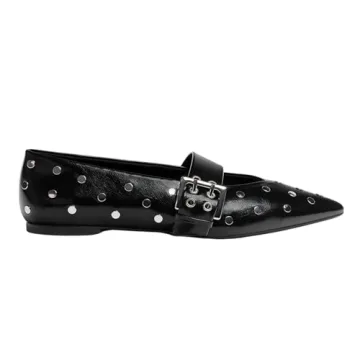 Show moreExquisitely designed, these ballet flats showcase stunning studded detailing that elegantly adorns the edges. Ballet shoes with a distinctive pointed toe design, adding a touch of uniqueness to their aesthetic. These mary jane flats boast a buckle strap fastening on the instep, adding both style and functionality. Flexible technical insole made of latex composite foam, designed to offer greater comfort. Women's ballerina shoes are versatile in their pairing options and suitable for various occasions, whether it's a graceful performance on stage or a chic addition to an everyday ensemble.