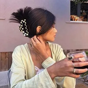 YISSION Large Checkered Vintage Girls Butterfly Hair Clips, Steady Square Claw Clips for Thin/Thick Hair, Fashion Hair Accessories