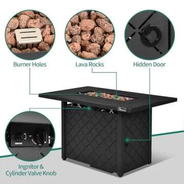 Show more Transform your outdoor space into a cozy haven with the YITAHOME 43 Inch Propane Fire Pit Table. This remarkable gas fire pit combines style, functionality, and safety to create the ideal alfresco lounge space for gatherings with friends and family. Featuring a powerful 50,000 BTU heating output, this fire pit ensures warmth and ambiance, making it the perfect centerpiece for your patio or deck. Whether it's a chilly evening or a lavish garden party, the YITAHOME fire table sets the stage for unforgettable moments, adding warmth and charm to your outdoor decor.