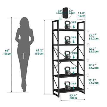 YITAHOME 5 Tiers Bookshelf, Artsy Modern Bookcase, Book Rack, Storage Rack Shelves Books Holder Organizer for Books/Movies in Living Room/Home/Office - Black