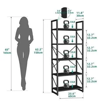 Engineered for versatility, this bookshelf features a five-tier open shelf design that maximizes your display and storage capabilities. Whether you're organizing books, showcasing family photos, or exhibiting decorative pieces like potted plants and ornaments, each shelf offers sufficient space to express your personal style. This bookcase is not only a practical solution for organization but also an opportunity to curate a visual gallery in your home.