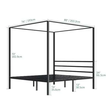 Show moreIntroducing the YITAHOME Metal Four Poster Canopy Bed Frame, a beautifully designed platform bed that brings sophistication and function to your bedroom. With its sturdy metal frame crafted from premium iron, this bed not only looks stunning but promises longevity and durability. Measuring 80'' L x 76'' W x 72'' H, it stands tall with an impressive weight capacity—up to 900 lbs depending on the size. Whether you are seeking a chic focal point or reliable mattress support, this bed frame seamlessly combines elegance with practicality, making it a valuable addition to any home.