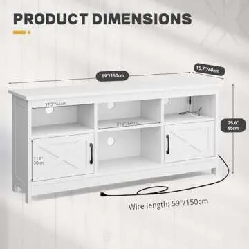 YITAHOME TV Stand for 65 Inch TVs, Entertainment Center with Storage Cabinets, Power Outlet & LED Light, Media Console Living Room Furniture, White