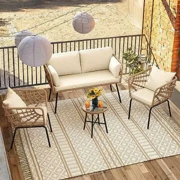 YITAHOME Wicker Patio Loveseat, All-Weather Rattan Outdoor Sofa for Balcony, Backyard, Pool, Porch, Deck, Outdoor Sectional Furniture Set with Table & Cushions - Beige