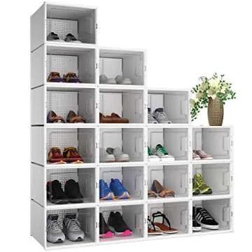Show moreYITAHOME XL Shoe Storage Box is the ultimate solution for shoe enthusiasts who demand both organization and accessibility. This incredible set of 18 shoe storage organizers isn't just about functionality; it's designed to elevate your space and showcase your prized footwear collection. Each box is sized generously at 14.1’’L x 10.9’’W x 8.2’’H, accommodating up to US Men’s size 14 and US Women’s size 15, making it perfect for everyone, from sneaker aficionados to stilettos lovers. With its sleek, white finish, these boxes add a touch of elegance to any closet or room.