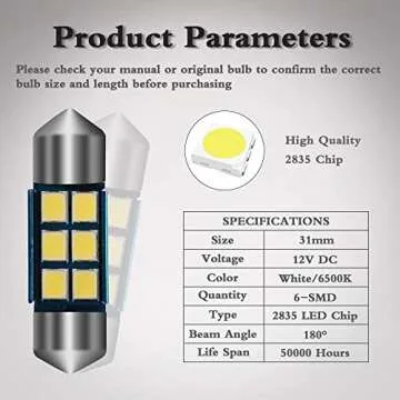 YITAMOTOR DE3175 31mm LED Festoon Bulb White Error Free Super Bright 6000K 2835 Chipsets for Car Interior Dome Map Door Light 3021 3022 3175 6428 4 Pack