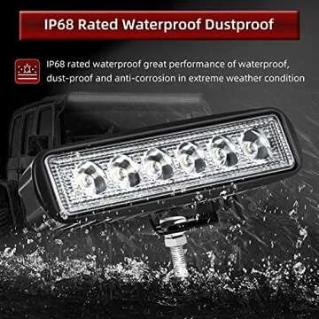Show moreIlluminate your adventures with the YITAMOTOR LED Light Bar – where durability meets performance. Designed to enhance your visibility in any condition, this 6-inch flood light bar is loaded with 6 pcs x 3W high-intensity LEDs, delivering an impressive 18W of power coupled with a cool 6,000K color temperature. Whether you’re navigating tough terrains or simply need extra lighting for your evening expeditions, this light bar offers a bright solution that vastly improves your driving experience.