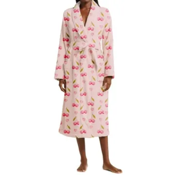 Show more Indulge in the cozy embrace of the Yiulangde Cute Flannel Fruit Print Robe, your perfect companion for relaxation and style. This robe is expertly crafted from a premium quality cotton blend, offering an unparalleled softness and breathability that transforms your lounging experience. Ideal for year-round wear, its lightweight and skin-friendly material keeps you comfortable throughout the day, whether you're enjoying a chilly evening or basking in summer warmth. Boasting a chic shawl collar and an open front design, this robe effortlessly combines practicality with modern aesthetics.