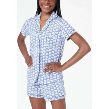 Show moreMeet the Yiulangde Women's Cute Elephant Cotton Pajamas – your ultimate cozy companion for every lazy day and cheerful night! Crafted with love and superior quality stretch fabric, these adorable Y2K-style two-piece pajama sets offer the perfect blend of style, comfort, and functionality. Designed with a delightful cute elephant print, you'll not only enjoy superior comfort but also exude charm while lounging at home. The set includes a comfy button-up short-sleeve shirt and matching shorts with an elastic waistband, ensuring a relaxed yet stylish fit all night long.
