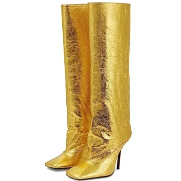 YIYA Gold Metallic Knee High Boots - Sexy Stiletto High Heels for Weddings and Parties