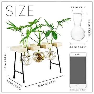 YIYUN Air Plant Terrarium,Propagation Stations for Desk Glass Terrarium Bulb Glass Vase with Wooden Stand Propagation Station for Hydroponics Plants Home Office Garden Decor