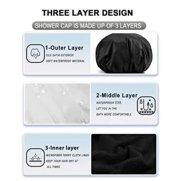 YIZIJIZI Terry Lined Shower Cap,Triple Layer Large Cap for Women,Shower Cap Reusable Waterproof,Long Thick Hair(Black)