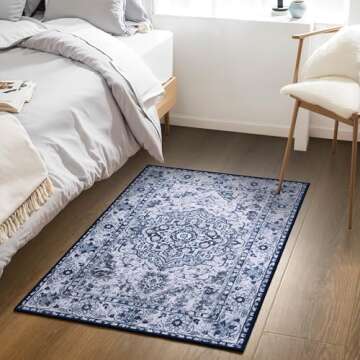 Show moreStep into comfort and style with the YJ.GWL Doormat Boho Floral Area Rug. This enchanting rug combines functionality and aesthetic appeal, making it a perfect choice for any home. Measuring at 2x3 feet, this small entryway rug features a stunning blue floral design that brings a touch of nature indoors. Crafted with premium polyester, it boasts a soft plush feel while being durable and non-shedding. Moreover, the rug is machine washable, allowing for easy maintenance, making it ideal for pet owners and families alike.