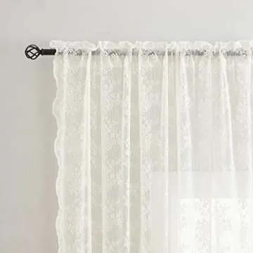 YJ YANJUN Sheer Lace Curtains for Bedroom Ivory Elegant Victorian Curtains Scalloped Edges Floral Kitchen Window Curtains 63 Inch Length Rod Pocket, 52 x 63 Inch, Ivory