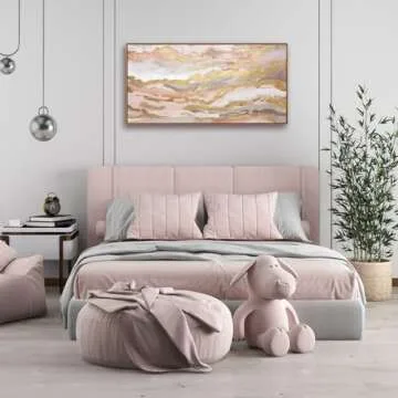 Show more Transform your living space with the YJYart Pink Wall Decor Abstract Wall Art, a stunning canvas masterpiece designed specifically for teen girls. This elegant wall art measures 20x40 inches, making it a striking focal point for any room. Featuring a chic blend of soft pink hues and luxurious gold lines, this abstract piece enhances the aesthetic of your space with a touch of sophistication. The high-quality canvas ensures vibrant colors that won’t fade over time, allowing you to enjoy its beauty for years to come. Ideal for bedrooms, playrooms, or any area you wish to brighten up, this wall decor brings warmth and an artistic flair to your home.