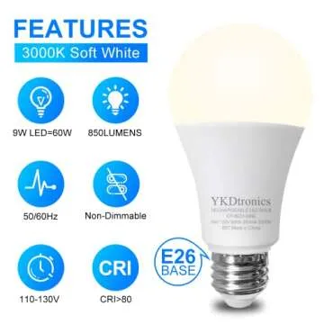YKDtronics Rechargeable Light Bulbs, Emergency Battery Light Bulb for Power Outage, Battery Operated Light Bulbs 2000mAh Battery Backup 850 Lumens 9W 60W Equivalent 3000K Soft White E26/E27 120V 4Pack