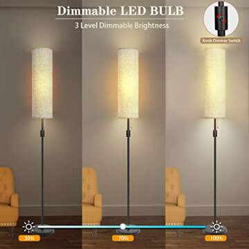 YKIOKE Floor Lamp, Standing Lamp for Living Room with 3 Levels Dimmable Brightness, Modern Tall Lamps for Bedroom, Living Room, Office, Kids Room, Reading, Minimalist Floor Lamp for Home Decor