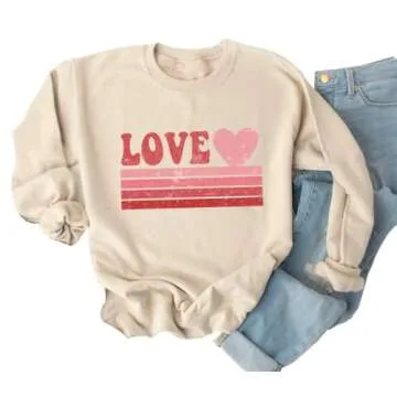 Ykomow Long Sleeve Valentines Shirts Women Plaid Love Heart Valentine's Sweatshirts Blouse Tops (M, Cream)