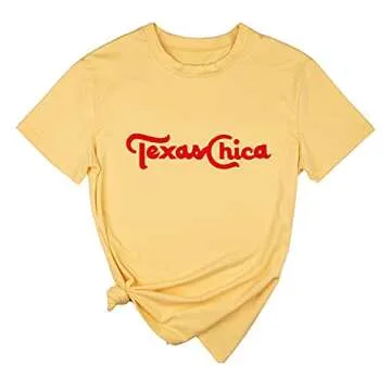 Introducing the Womens Texas Chica T Shirt, a delightful piece from the heart of Texas that embodies the spirit of Texan pride and casual style! This vintage-inspired yellow graphic tee is not just a shirt; it's a statement piece for women who want to showcase their love for Texas in a fun and fashionable way. Made from incredibly soft fabric, this shirt promises comfort and style for any occasion, making it perfect for those sunny summer days.