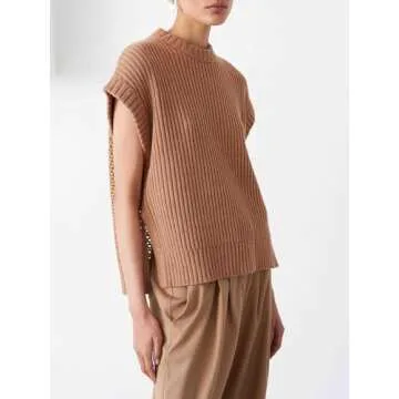 YKR Cap Sleeve Sweater Vest for Women Crew Neck Short Sleeve Sweater Oversized Knit Ribbed Pullover Tank Tops Apricot