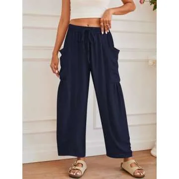 YKR Wide Leg Pants Woman Casual Loose Lightweigt Beach Palazzo Harem Pants Flowy Pants 2024 Navyblue S