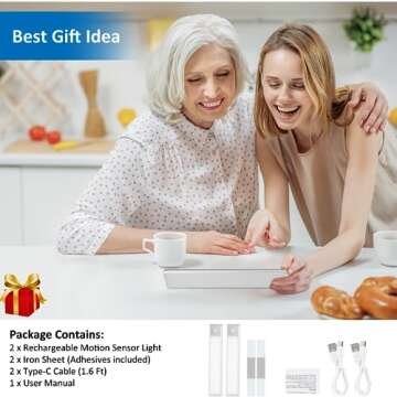 YLXS 30-LED Motion Sensor Under Cabinet Lights, Magnetic Rechargeable Under Counter Closet Light, Wireless Night Light Bar Stick-On, 2-Pack, Cool White