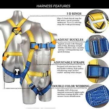 Ymachray Fall Protection Safety Harness OSHA/ANSI Compliant,internal Shock Absorbing landyard&Hook