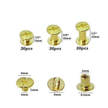 Show moreIntroducing the YMAISS 90 Sets Chicago Screws, your ultimate solution for all your binding needs! Whether you're a seasoned craftsperson or a casual DIY enthusiast, these versatile screw posts are crafted for perfection. With a total of 90 sets in three different sizes, including 1/4 inch (6 mm), 3/8 inch (10 mm), and 1/2 inch (12 mm), they are ideal for various applications. Made from high-quality carbon steel and beautifully brass-plated, these screws offer not only durability but also a sleek finish that enhances any project.
