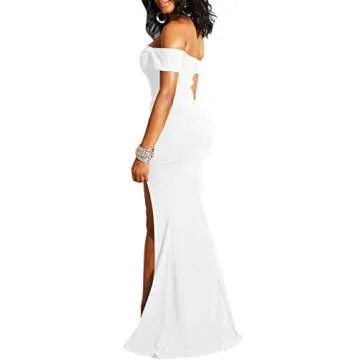 YMDUCH Women's Off Shoulder High Split Evening Gown Dress