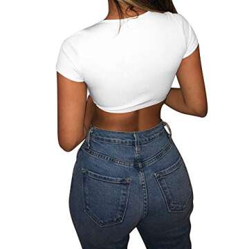 Show moreIntroducing the YMDUCH Women's Sexy Short Sleeve Button Knitted Ribbed Casual Basic Crop Top, your new go-to piece for stylish versatility. Crafted from high-quality ribbed fabric, this top features a snug fit that accentuates your curves while maintaining breathability. With its chic button-down design, you have the freedom to flaunt your style by adjusting the neckline for a playful look or buttoning it up for a more classic appeal. Available in a timeless white hue, it offers effortless coordination with various outfits, making it an essential addition to any wardrobe.