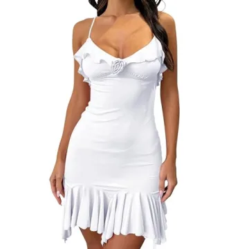 Show moreIntroducing the ultimate in playful elegance—the YMDUCH Women's Sexy Sleeveless Adjustable Strap Cross Backless Ruffle Club Mini Dress. Meticulously crafted from a blend of polyester and spandex, this beautiful White Dinner Dress ensures a comfortable, flattering fit while giving you the freedom to move with confidence. The soft and elastic fabric gently hugs your curves, making it the perfect choice for various occasions whether you’re hitting the dance floor or attending a summer garden party.