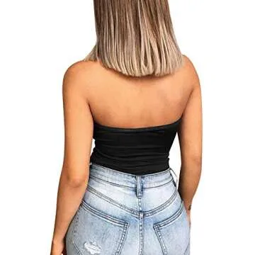 YMDUCH Women's Sexy Strapless Bodysuit One Piece Triangle Off Shoulder Leotard Black