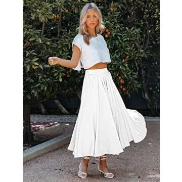 YMDUCH Women's Summer Elastic Waist Maxi Skirts Boho A-Line Flowy Long Skirts with Pockets White