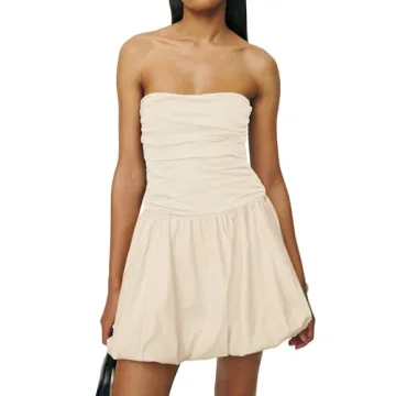 Show moreDiscover the enchanting elegance of the Ymejia Womens Ruched Strapless Mini Dress – where style meets comfort! This exquisite dress is artfully crafted from a blend of cotton and polyester, ensuring a soft and lightweight feel against your skin. The fit-and-flare design enhances your natural silhouette, making this adorable dress a perfect addition to your wardrobe. Its playful bubble skirt and back smocked details contribute to a flattering fit, while the strapless top keeps things chic and fashionable. Whether you’re hitting the clubs or enjoying a casual beach day, this dress is ready to turn heads and have you feeling like a princess!
