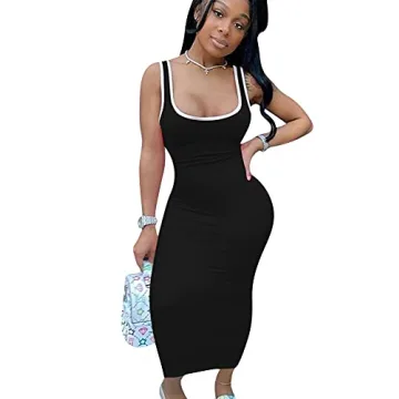 YMING Women Sleeveless Party Dresses Sexy Plain Mini Bodycon Dress