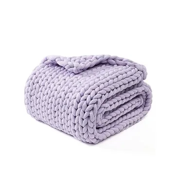 Show more Introducing the striking **YnM Chunky Throw Blanket** in **Iris Lavender**, a perfect blend of warmth, comfort, and style. This beautiful, hand-knitted blanket weighs a generous 4.4 pounds, providing that cozy hug we all crave, whether you're relaxing on the couch, curling up in bed, or enjoying a peaceful afternoon outdoors. Crafted with exceptional attention to detail, this blanket is designed for versatility, complementing any setting and occasion. Its breathable woven texture keeps you comfortable, preventing overheating, while the intricate knit ensures that you snuggle up in ultimate comfort without any loose holes.