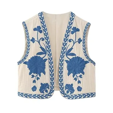Ynocfri Embroidered Vest Tops for Women: Vintage Boho Floral Cardigan