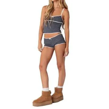 Yoawdats Women Y2K 2 Piece Shorts Set Dot Print Sleeveless Camisole Elastic Shorts Lounge Set Sleepwear Club Streetwear (Black, S)